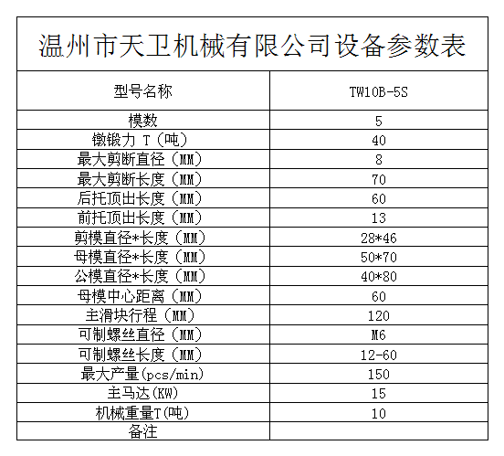 您當(dāng)前的位置:首頁 / 產(chǎn)品中心 / 五模五沖多工位冷鐓機 / └ TW10B(M6)多工位冷鐓機 / TW10B-5S全自動多工位冷鐓機